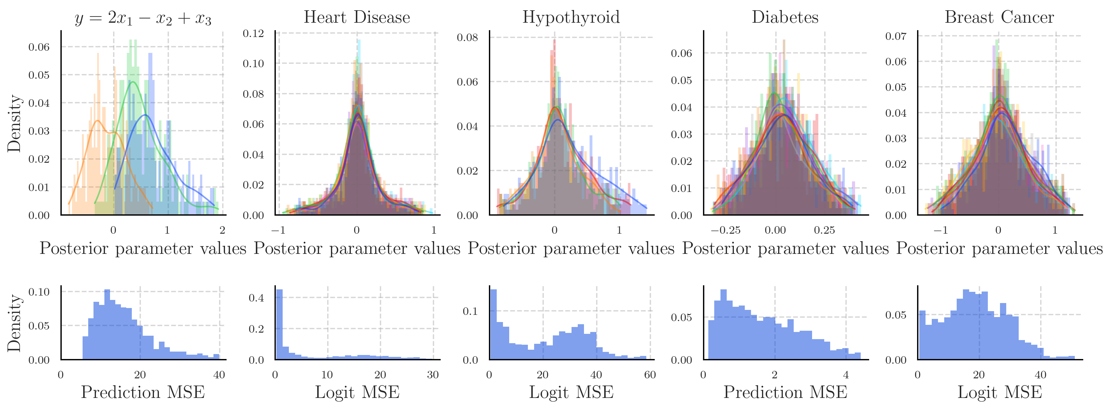 Since we make an in-accurate approximation of the posterior distribution for the Breast Cancer and Hypothyroid prediction tasks, we will ignore it. However, for the other tasks our approximations for the prior and posterior in-context distributions have low error.